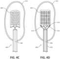- FIG. 4A is an example illustration of an adrenalgland therapy lead 400 anddeployment system 402 in accordance with embodiments of the disclosure. As shown inFIG. 4A, the adrenalgland therapy lead 400 is arranged within thedeployment system 402. The adrenalgland therapy lead 400 may be used alone for delivering therapy to an adrenal gland of a patient or as part of apparatuses, methods, or systems for delivering therapy to an adrenal gland of a patient. The adrenalgland therapy lead 400 may include apaddle component 404. Thedeployment system 402 may have a cylindrical shape with a circular opening at a distal end thereof. The adrenalgland therapy lead 400, including alead body 406, may be loaded into thedelivery system 402 at either end. In the loading the adrenalgland therapy lead 400 therein, thepaddle component 404 may collapse within thedeployment system 402. As shown inFIG. 4A, thepaddle component 404 may roll upon itself to collapse within thedeployment system 402. In certain instances, thepaddle component 404 may fold, crease, pleat, or bend to collapse within thedeployment system 402. In certain instances, thedeployment system 402 may be a delivery catheter.