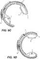 - FIGS. 9A-9G illustrate the 360 degree rotation of thegantry 56 in the counter-clockwise direction in 60 degree increments, withFIG. 9A representing a zero degree position of theimaging sensor 76 andtransmitter 74.FIG. 9B represents a 60 degree turn/position of thegantry 56. For each 60 degree turn of thegantry 56, themotor assemblies 100, under the control of themotion control module 51, turn the inner C-arm 72 by 30 degrees counter-clock wise and also turn the outer C-arm 70 by 30 degrees counter-clock wise for a combined 60 degree turn.FIG. 9G represents a full 360 degree turn of thegantry 56. As can be seen, the outer C-arm 70 and inner C-arm 72 have each moved 180 degrees from the original zero degree position ofFIG. 9A. Note that thetransmitter 74 andsensor 76 inFIGS. 9D and9G are reversed from their positions inFIGS. 1 and9A. This may be advantageous, for example, if there is an advantage in having the transmitter on one particular side or in having the sensor on one particular side. These orientations are made possible and facile with the present disclosure.