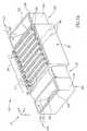 - In some embodiments a cleaning blade similar tocleaning blade 248, is slotted so that it comprises a plurality of individually flexible teeth.Fig. 11C schematically shows a slottedcleaning blade 260, cleaningshuttle 28.Cleaning blade 260 comprises a plurality ofteeth 262 having cleaning edges 264. During cleaning eachtooth 262 contacts asurface 230 of adifferent printing head 52 at an acute angle and anedge 264 of the tooth presses resiliently to the surface. Since eachtooth 262 is flexible substantially independently of the other teeth, eachtooth 262 adjusts to the height,i.e. the z-coordinate, ofsurface 230 of theprinting head 52 that it cleans independently of the other teeth.Cleaning blade 260 is therefore able to compensate efficiently to slight differences in the heights ofsurfaces 230.