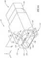 - By way of example,RPA 300 shown inFigs. 12A-12D is shown comprising acollision detection system 340 optionally mounted onshuttle 28. Optionally,collision detection system 340 comprises an accelerometer (not shown) that generates signals responsive to acceleration ofshuttle 28. A collision usually generates a force that produces an unwanted shuttle acceleration having a characteristic profile useable to identify the acceleration as resulting from a collision. For example, a collision in general results in an impulse applied to the shuttle that produces a corresponding identifiable acceleration.