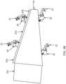 - The shape of thework platform 20 helps to guide thecable carrier system 28. In addition, sections of thecables 36a and 36c are pinned at 28a and sections of thecables 36b and 36d are pinned at 28b, where they crossover, in order to pivot, which allows thecables 36a, 36b, 36c, 36d to go from a minimum to maximum radius without sliding from the pinned locations at 28a, 28b, which keeps the correct amount ofcable 36a, 36b, 36c, 36d in place at all times. The pinning of thecables 36a, 36b, 36c, 36d at 28a, 28b prevents thecables 36a, 36b, 36c, 36d from slipping backward through the crossover area and interfering with any opposing set ofcables 36a, 36b, 36c, 36d.