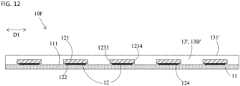 - The packaging structure13' may be, or may include, aphotoluminescent element13A' directly covering the chip-upper surface121 of eachLED semiconductor chip12 and the chip-edge surfaces1231,1232,1233 and1234. In a variant embodiment as shown inFIG.9D, the packaging structure13' can be a photoluminescent layer. In contrast to thephotoluminescent element13A', which is formed directly on thesubmount substrate11, the photoluminescent layer is pre-formed and then disposed (e.g., laminated) on the chip-upper surfaces121 of the LED semiconductor chips12. Thus, with this configuration, the photoluminescent layer covers the chip-upper surfaces121, but does not cover the chip-edge surfaces1231,1232,1233 and1234 of the LED semiconductor chips12.