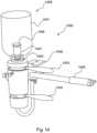 - Furthermore,Figs. 12a and b schematically shows anothercoupling device 1200 at which the supply of rinsingwater 1201 is shown in detail.Hose 1202 is used to guide water to the lower section ofhousing 1203. The rinsingwater valve 1204 is depicted inFig. 12b in a cross-sectional view. Guiding the water in this way, saves space and allows the hose to follow the vertical movement of the probe. It allows as well the activation of the rinsing valve by the Bowden cable.