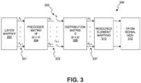 - As shown inFIG. 3, v sequences of symbolsx 301 are received from thelayer mapper 302 that performs standard LTE layer mapping (if necessary) for the selected LTE downlink transmission mode, where v corresponds to the number of layers being used.