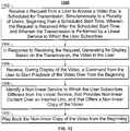 - To this end and others, in some aspects of the disclosure, the media guidance application may receive a request from a user to access a video that is scheduled for transmission, simultaneously to a plurality of users, beginning from a scheduled start time, where the request is received after the scheduled start time, and where the transmission is performed by a linear service to which the user subscribes. For example, the media guidance application may receive a selection of a program on a television schedule guide for a program whose broadcast has already begun.