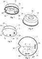 Die Mittel zum Einleiten der Flüssigkeit in die Kapsel, der Einlass und gegebenenfalls auch der Einleitbereich können in einem Randbereich des Adapters angeordnet sein. Bevorzugt sind die Mittel zum Einleiten einer Flüssigkeit in die Kapsel dabei als ein insbesondere umlaufender Kanal oder eine Rinne ausgebildet. Dadurch kann das Zentrum des Adapters für andere Teile freigehalten werden. Darüber hinaus kann beim Einsatz von beispielsweise mehreren Einstechkanülen eine bessere Verteilung der Flüssigkeit über die in der Kapsel enthaltene Ausgangssubstanz erzielt werden.The means for introducing the liquid into the capsule, the inlet and optionally also the introduction area can be arranged in an edge area of the adapter. The means for introducing a liquid into the capsule are preferably designed as a channel or channel, in particular a circumferential one. This allows the center of the adapter to be kept free for other parts. In addition, when using, for example, several injection cannulas, a better distribution of the liquid over the starting substance contained in the capsule can be achieved.