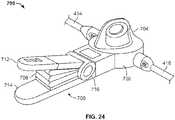 - With continued reference toFig. 19, the proximal end portion of thepumping handle 406 is pivotally mounted within thehousing 402 of the device via a pin or the like passing throughopening 486. As a result thehandle 406 pivots about axis 488 as it is actuated. Apawl 492 is also attached to the proximal end portion of the pumping handle 406 so as to pivot aboutaxis 494. Astop 495 formed on the pawl 492 (which may also or alternatively be formed on the proximal end portion of handle 406) limits movement of the pawl in the direction indicated byarrow 496 to the position illustrated inFig. 19. Atorsion spring 498 urges the pawl into this position. Asecond torsion spring 502 urges thehandle 406 in the direction ofarrow 504 until it engages a forward stopping surface positioned on or within thehousing 402.