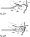 - As shown inFig. 17A a structure ormember 83 is formed into a looped and elongated structure having arcuate edges for presenting an atraumatic surface. Thestructure 83 may be formed of a relatively rigid wire or spring like material which maintains its configuration when pressed against a tissue surface.Structure 83 may form a continuous structure which defines an opening there through such as a looped or elongated and looped member which is open through the loop. Thestructure 83 may be contained entirely within theexpandable structure 81 which may be formed to have a predefined shape which is distensible or non-distensible when inflated by the cryogen. Moreover, theexpandable structure 81 may be formed to surround thestructure 83 entirely without being supported by or attached to thestructure 83 itself. Such astructure 83 may provide a configuration which presents a low-profile as the device is advanced into and through the nasal cavity and between the nasal turbinate tissues. Yet because of the relatively flattened shape and rigidity and integrity of thestructure 83, thestructure 83 may be used to manipulate, move, or otherwise part the tissues of the nasal cavity without having to rely upon theexpandable structure 81. Additionally, the low-profile enables thestructure 83 to be positioned desirably within the narrowed confines of e.g., the cul-de-sac in proximity to the posterior nasal nerves. When theexpandable structure 81 is in its deflated state, it may form a flattened shape and when inflated, theexpandable structure 81 may inflate into a configuration which remains unsupported by or attached to thestructure 83. Because thestructure 83 may be formed of a member which solid along its length, the cryogen may be introduced directly into theexpandable structure 81 through a distal opening defined in theprobe shaft 145.