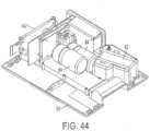 - FIG. 44 shows a perspective view of an interior section of thecycler 14 with the upper portion of thehousing 82 removed. In this illustrative embodiment, thecycler 14 includes asingle air pump 83, which includes the actual pump and motor drive contained within a sound barrier enclosure. The sound barrier enclosure includes an outer shield, such as a metal or plastic frame, and a sound insulation material within the outer shield and at least partially surrounding the motor and pump. Thisair pump 83 may simultaneously provide air pressure and vacuum, e.g., to a pair ofaccumulator tanks 84. One of thetanks 84 may store positive pressure air, while the other stores vacuum. A suitable manifold and valve arrangement may be coupled to thetanks 84 so as to provide and control air pressure/vacuum supplied to the components of thecycler 14.