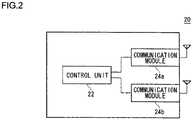 - Fig. 2 shows the configuration for realizing the communication capability of thegame device 20. Thegame device 20 includescommunication modules 24a and 24b (hereinafter collectively referred to as the "communication module 24") each capable of wirelessly connecting to a plurality of slaves, and acontrol unit 22 for controlling transmissions of information between the communication modules. Thegame device 20 may also include three ormore communication modules 24.