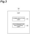 - As illustrated inFIG. 3, theAMF 30 includes acommunication unit 31 that receives a request for use of a service from a UE and transfers the request for use to theNSSF 60; and adetermination processing unit 32 that determines whether or not the AMF is the target AMF based on information related to the selected target AMF in the selection result information notified from the NSSF, and responsive to a determination that the AMF is the target AMF, the AMF performs processing for a service related to the request for use, and responsive to a determination that the AMF is not the target AMF, the AMF transfers a request for processing for a service related to the request for use, to the target AMF.