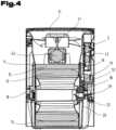 Bevorzugt ist eine erfindungsgemässe Ausführungsform, bei welcher die Trommel im Gehäuseunterteil gelagert ist und das Gehäuseoberteil einen elektrischen Trommelantrieb trägt, welcher angeordnet ist, im zusammengesetzten Zustand des Gehäuses die Trommel anzutreiben. Der Trommelantrieb kann dazu ein Übertragungsmittel (bspw. Zahnrad) aufweisen, welches so mit der Trommel zusammenwirkt, dass durch den Trommelantrieb im zusammengesetzten Zustand des Gehäuses die Trommel angetrieben werden kann. Durch Abheben des Gehäuseoberteils wird die Trommel vom Antrieb entkoppelt, ohne dass weitere Massnahmen notwendig wären. Insbesondere kann der Antrieb der Trommel von oben her erfolgen, d.h. die Antriebsmittel sind oberhalb der Trommelachse angeordnet und greifen von oben her in eine entsprechende Struktur (Zahnrad oder dergleichen) der Trommel ein.An embodiment according to the invention is preferred, in which the drum is mounted in the lower housing part and the upper housing part carries an electric drum drive, which is arranged to drive the drum in the assembled state of the housing. For this purpose, the drum drive can have a transmission means (e.g. gear), which interacts with the drum in such a way that the drum can be driven by the drum drive in the assembled state of the housing. By lifting the upper part of the housing, the drum is decoupled from the drive without any further measures being necessary. In particular, the drum can be driven from above, i.e. the drive means are arranged above the drum axis and engage from above in a corresponding structure (gear or the like) of the drum.