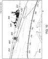 - Particularly, as illustrated inFigs. 6 and8, the graphic 42f indicative of theroute line 42 which expresses the route set by the user using theplotter 11 may be displayed as if it is pasted on the sea surface of the image captured by thecamera 3. Therefore, the user can grasp the route rendered on the sea surface (including the spatial relationship with the ship 4) with an actual feeling by looking at the sea surface of the synthesized image displayed on thedisplay unit 2, and can intuitively perform the steering along the route. Note that, since thevirtual reality object 43v indicative of the stoppingarea 43 is similarly displayed so as to be pasted onto the sea surface, theship 4 can be easily moved to and stopped at the stoppingarea 43.