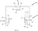 - For simplicity of presentation,Figure 6A only shows the viewing elements, associated components, and illuminators (together, optical assemblies) of the multi-focal, multi viewing elementendoscope tip section 600a. It is understood thatendoscope tip section 600a may include one or more working channels that enable the insertion of multiple surgical tools simultaneously. Similarly,endoscope tip section 600a may include one or more fluid channels, such as for separately feeding at least one of a front fluid injector, a side fluid injector and/or a pathway fluid injector, as well as for separately providing suction through the pathway fluid injector. Theendoscope tip section 600a may also include one or more electrical cables threaded through an elongated shaft and/or a bending section for controlling the endoscope's cameras and illuminators.