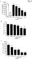 Example 21. Cytotoxic activity ofnab-rapamycin in combination with Abraxane™ on vascular smooth muscle cells- Vascular smooth muscle cells (VSMC) were seeded onto 96 wells plates in the presence of increasing concentrations ofnab-rapamycin and 0 µM, 1 µM, 10 µM, or 100 µM of Abraxane™ (ABI-007). To evaluate the cytotoxic effect of nab-rapamycin and Abraxane™, treated VSMCs were stained with ethidium homodimer-1 (Invitrogen, Carlsbad CA) and analyzed for red fluorescence. Ethidium homodimer-1 is a high-affinity, fluorescent nucleic acid stain that is only able to pass through compromised membranes of dead cells to stain nucleic acids. As shown inFig. 7A,nab-rapamycin, by itself, exhibited dose-dependent cell killing as demonstrated by increasing fluorescence. Cell killing by nab-rapamycin was not enhanced by Abraxane™ at 1 µM or 10 µM; however, it was greatly enhanced by Abraxane™ at 100 µM (ANOVA, p < 0.0001). Cells stained with ethidium homodimer-1 as shown inFig. 7A were also exposed to calcein. Calcein AM (Invitrogen) is a non-fluorescent molecule that is hydrolyzed into fluorescent calcein by nonspecific cytosolic esterases. Live cells exposed to calcein AM exhibit bright green fluorescence as they are able to generate the fluorescent product and retain it. As shown inFig. 7B, nab-rapamycin exhibited dose dependent cytotoxic activity as shown by a reduced amount of fluorescent staining by calcein. This reduction in fluorescence was enhanced by coincubation with Abraxane™ in a dose dependent manner. ANOVA statistic gave p < 0.0001 at all drug concentrations of Abraxane™
