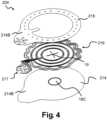 - Fig. 3 is an exploded view of a base plate of an ostomy appliance,