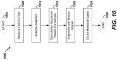 - FIG. 10 is a flowchart showing non-limiting exemplary steps ofdata analysis1000 for use, for example, at124B ofFIG. 1B. Data analysis can be provided in a secure online cloud environment. In some embodiments, data analysis can be performed using a software-as-a-service platform. Non-limiting examples of secure online cloud environments include the Seven Bridges Genomics platform. The Seven Bridges Genomics platform is a non-limiting example of a software-as-a-service platform.