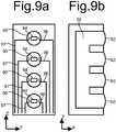 Figure 9b shows a cross-section in the x-z plane, showingmembranes 92 overopenings 90. In the illustrated embodiment,openings 90 are in connection with an evacuated or fluid filledcavity 98, preferably of the same fluid as the medium between the surface ofsubstrate 10 andwall 14. Instead of a single cavity 98 a plurality of cavities may be used for individual openings. Use of a cavity or cavities improved the detectability of the sound.