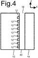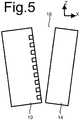 Figure 5 shows an embodiment wherein the surfaces ofsubstrate 10 andwall 14 are not parallel, but are directed at a non-zero angle relative to each other. This may be used for example to adjust the signal amplitudes atsound detectors 12 at different distances from opening 16 relative to each other. For example, the distance between surfaces ofsubstrate 10 andwall 14 may decrease with distance from opening 16, which may be used to compensate for attenuation of the excited wave with distance from opening 16. In another embodiment, the distance between surfaces ofsubstrate 10 andwall 14 may increase with distance from opening 16.
