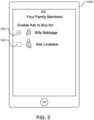 Referring toFIG. 5, there is illustrated one embodiment of ascreen 500 configured to enable the family organizer to selectively control the application of a real-time purchase approval process for each individual family member. In the illustrated embodiment ofFIG. 5, the feature is designated as "Ask to Buy" as shown. Each family member associated with the family account is listed along with acontrol 502. In the illustrated embodiment, by default the real time purchase approval process is enabled for the accounts of child family members, and disabled for the accounts of adult family members. Generally, the real-time purchase approval process causes a real time notification to be sent to thecomputing devices 100 of one or more adult family members when a child family members is about to make purchase of digital content from themedia server 202,apps server 204, ore-book server 206. The notification provides the adult family member with information identifying the digital content being purchased, and enables that adult family member to approve or decline the purchase (or defer the decision until a later time). This process is synchronous in that the purchase operations started on thecomputing device 100B of the child family member are dependent for completion on the approval of the adult family member via that member'scomputing device 100C.