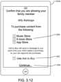 Another feature of the confirmation step 3.12, as illustrated inFIG. 3.12, is the option to enable a real-time purchase approval process for purchases made by a child family member, via Ask to Buylink 352. Generally, when the real-time purchase approval feature process is enabled, then each time the child family member is about to make a purchase of content to be charged to the purchase account, a notification is sent tocomputing device 100 of each adult family member (or alternatively to a designated adult, such as the family organizer) identifying the content being purchased and the price, so that the family organizer can approve the purchase. The family member can approve the purchase via an interface on theircomputing device 100, or optionally in one embodiment via thecomputing device 100B of the child family member making the purchase. This option can be enabled by default, and is further described below.