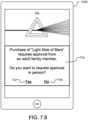 If the real-time purchase approval process is enabled, then thesystem 200 transmits 618 a notification to the child family member'scomputing device 100B indicating the requirement for the purchase approval. The child family member'scomputing device 100B displays 619 a screen or window indicating that an adult family member is required to approve the purchase of the requested item and prompting the child family member to indicate via alink 704 whether to request such approval, for example from the family organizer or other designated adult family member or decline. Anexample screen 703 with anoverlay 708 is illustrated inFIG. 7.2. The child family member can select the Nolink 704, which indicating is then transmitted to the system, 200 in which case the purchase process is terminated 638 (FIG. 6B) and the child family member is returned, for example, to a home screen of the content server the child family member was using to make a purchase. Following selection of Yes link 706, the user'scomputing device 100B transmits to thesystem 200 an indication that the child family member agrees to have an adult family member approve the purchase. Thecomputing device 100 returns to the previous screen, which is updated 620 to indicate that that a request for permission has been sent, and is awaiting approval by another family member, for example as illustrated byindication 710 on thescreen 705 inFIG. 7.3.