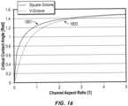 - It was also observed that, when the small channels have an aspect ratio that is larger than that needed to satisfy the critical contact angle formula for the respective geometry of the small channel and the wetting criteria for the main channel is met, liquid will flow in the small channels and main channel independently. This effect reduces the surface area available for the flow in the main channels, which can slow the flow in the main channel while liquid can flow more quickly in the small channels. The liquid in the small channels is typically a very thin film (in the range of 6 and 10µm or in the range of about 6 and about 10µm), which evaporates faster than the liquid in the main channel. Thus, small channels having a large aspect ratio can improve evaporation.
