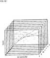 - FIG. 23 schematically represents edge detection by means of numerically evaluated first derivatives of count profiles.FIG. 24 graphically illustrates that first derivative of count profiles, obtained from real data, are difficult to distinguish from noise.FIG. 25 graphically illustrates the third power of the count profile, shifted by 1 to suppress noise and enhance signal (see top trace). Also illustrated inFIG. 25 (see bottom trace) is a first derivative of the top trace. Edges are unmistakably detectable. See Example 1 for experimental details and results.