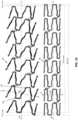 - A variety of differently-sized stents having a plurality of rings formed of biphasic open trapezoidal shapes (alternating distal-facing and proximal-facing trapezoidal shapes), such as shown inFIGS. 20A-20E,21,22B,23B,25A-31C, in which the rings are connected by s-shaped connectors in a helical pattern were characterized and compared to each other as well as to known stents (such as the GORE TIGRIS vascular stent, BARD LIFESTENT Vascular stent, CORDIS S.M.A.R.T CONTROL stent, COVIDIEN PROTÉGÉ EVERFELX stent, Abbott ABSOLUTE PRO LL vascular stent, OptiMed SINUS-SUPERFLEX stent, COOK ZILVER PTX stent, and IDEV SUPERA stent).