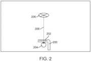 FIG. 2 is a schematic representation of an exemplary AR/VR headset 200 with respect to an eyeball of a user of theheadset 200. Theheadset 200 includes a display device 202 (e.g. a laser beam scanning display) which is positioned in front of the user'seyeball 204. An eye tracking device coupled to theheadset 200 may track the position of the user's eyeball 204 (e.g. user's pupils). The user's line ofsight 208 may be directed to a real or avirtual object 206.