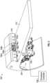 - Thecarrier assembly 224 can include acamshaft 554 having one or more cam lobes. Each of the cam lobes can be positioned to contact, drive, and/or otherwise correspond to one of thecam followers 548. In the illustrated embodiment, for example, thecamshaft 554 includes afirst cam lobe 556a that corresponds to thefirst cam follower 548a and asecond cam lobe 556b that corresponds to thesecond cam follower 548b ("thecam lobes 556"). Each of thecam lobes 556 can include aprotrusion 557a-b or other rotationally asymmetric feature extending away from thecamshaft 554. Thecamshaft 554 can be operably (e.g., rotatably, etc.) coupled to thehousing 438 such that, as described previously, themotor 332 can drive rotation of thecamshaft 554, e.g., about a longitudinal axis of the camshaft 554 (not shown). The rotation of thecamshaft 554 can cause one or more of thecam lobes 556 to exert force onto one of the cam followers (e.g., via rotation of theprotrusions 557 into contact with the cam followers). In the illustrated embodiment, for example, rotation of the cam shaft selectively causes thefirst cam lobe 556a to exert a force onto afirst bearing surface 558a of thefirst cam follower 548a and causes thesecond cam lobe 556b to exert a force onto asecond bearing surface 558b of thesecond cam follower 548b. As described in greater detail below, the interaction between the cam lobe(s) 556 and the bearing surface(s) 558 can move (e.g., pivot, translate, etc.) the cam follower(s) 548 relative to thehousing 438, e.g., to drive the desired electrical connector to a position in which a user can easily connect their mobile phone to the electrical connector.