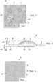 - To obtain a nonwoven cross section specimen, the nonwoven is laid on a flat bench with a first side upward, and is cut along line 2-2 so as to cut the protrudedfirst area 2 in its apex height and sandwiched the cut protrudedfirst area 2 betweensecond areas 4, referring toFigs. 1 and 2.