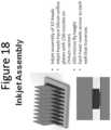 - Figure 18 illustrates an example for an inkjet assembly, with 10 inkjet heads that have silicon orifice plates with 256 nozzles on 254 µm centers, and 100 µm fly height.