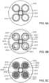 - While specific geometries of the multi-core optical fiber cable are shown explicitly herein, those with ordinary skill in the art having the benefit of the present disclosure will readily appreciate that a wide variety of configurations for the multi-core optical fiber cable are possible. In the configuration shown inFigs. 5A-5N, the white illumination spot at the distal end of the multi-core optical fiber is somewhat larger than the 2X2 array of laser spots. In some cases, this geometry is desired, because it provides illumination into both the retinal treatment target area as well as some surrounding retina and because the illumination spot small enough to keep the white light fairly concentrated. Also, the geometry enables adequate white irradiance at the retina with a relatively small core diameter fiber. Furthermore, as explained above, the intensities of the white illumination and the laser aiming beams can be adjusted (e.g., at the Illumination Light Source and Surgical Laser System, respectively) to provide the right amount of laser aiming beam contrast against the white while providing enough white illumination to easily see the retina.