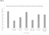 - FIG. 9 depicts the expression level of IL-2/syn-Tacs, in which the IL-2 is wild-type (wt), or comprises various combinations of F42A, D20K, Q126A, E15A, Y45A, and H16A.