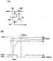 24A and 24B are a waveform diagram of signals for driving the pixel shown in FIG. 23 and an explanatory diagram showing a correspondence between these signals and an equivalent circuit.