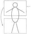 図4は第3の実施の形態の発明に係るスクリーン1の表示例を示す。スクリーン1に表示された画像について、パンニングしたい場合がある。例えば、画像の人物の上部が表示されている状態から下部の位置の画像にパンニングする場合は、画面をパンニング可能な状態にしてから、オペレータがポインティング装置20を垂直方向に振ることでスクリーン1が相対的に下方に移動する。実際は、画像が上方に移動されるわけである。具体的には、オペレータによってポインティング装置20が垂直方向に振られると、角速度検出手段22が、角速度から一定時間毎に移動前後の相対位置の情報をサンプリングし、その移動前後の相対位置を検出し、それをデータ送信手段23を介して、画像表示装置30のデータ受信手段31へ送る。次に、該相対位置情報を受信した画像表示装置30のシステムマイコン33が、それを積分して移動量を算出する。次いで、得られたサンプリング毎の移動量が連続して所定値を越えた回数に応じた移動量でパンニングが実行される。