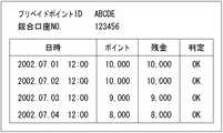 ポイント照合部16は、利用者ポイント蓄積部12に蓄積されたプリペイドポイントに相当する金額と利用者口座20に準備された金額を適宜記録し、それらを照合する装置である。プリペイドポイントが電子情報である場合、これは、ハードディスクなどにより構成される。また、利用者ポイント蓄積部12などの装置の一部として構成されてもよい。ポイント照合部16が、記録するタイミングは、プリペイドポイントの増減が生じたときでもよいし、一定時間間隔でもよい。一般に、利用者口座20は銀行等の金融機関に設置されているので、金融機関からネットワーク等を介して金額に関する情報がポイント照合部16に入力される。