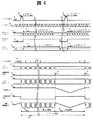 図10は図9に示した帰線期間制御内蔵表示制御部83の動作を説明するタイミング図である。図10において、86は帰線期間制御内蔵データスタート信号、87は320ラインデータ開始タイミング、88は三角波第1データ開始タイミング、89は三角波第2データ開始タイミング、90は帰線期間制御内蔵表示データ、91は320ライン目入力表示データ、92は三角波第1入力データ、93は三角波第2入力データ、94は帰線期間制御内蔵1ラインラッチデータ、95は319ライン目ラッチデータ、96は320ライン目ラッチデータ、97は三角波第1ラッチデータである。