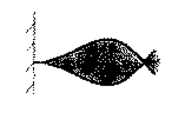 光ファイバ115Aを、いずれの高調波モードで、振動することができ、他方、高調波モードの振動を伴う光ファイバ115の長さは、光ファイバ115Aの移動範囲を決定することに留意されたい。この動作の範囲は、同様に、映写ディスプレー101の映写範囲を決定する。図2Aおよび2Bを参照すると、図2Aは、一次モードで振動している典型的な光ファイバ115Aの動作を示し、他方、図2Bは、二次モードで振動している典型的な光ファイバ115Aの動作を示す。このように、光ファイバ115Aは、一次モードまたは二次モード(ならびにより高次のモード)のいずれかで、光ファイバ115Aの長さおよび振動周波数に依存して、振動することができるが、二次モードで光ファイバ115Aを振動させることは、逆に、一次モードで光ファイバを振動させるよりも、より広い映写範囲を提供することができる。  二次モードの光ファイバの高調波周波数は、一次の高調波の約6倍であることが、当業者に理解される。したがって、与えられた周波数では、光ファイバの長さlは、二次モードの場合の振動に対する長さlよりも一次モードの場合の方がより短くなければならない。  Note that the optical fiber 115A can oscillate in any harmonic mode, while the length of the