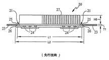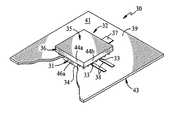 (69)金型は回路基板上で閉じられ、カプセル化材料は圧力をかけられて充填導管を通されるかもしれない。第2キャビティは第1キャビティからチャネルを通して運ばれたカプセル化材料で満たされるかもしれない。(70)第2領域は第1領域より狭いかもしれない。(71)チャネルは回路基板を貫通する開口部を含むかもしれない。(72)カプセル化材料は第1キャビティからチャネルを通って送られて第2キャビティを満たすかもしれない。(73)カプセル化材料は第1キャビティの第1端へ注入され第1端の反対の第2端から第1キャビティから送られるかもしれない。 (69) The mold is closed on the circuit board and the encapsulant may be pressurized and passed through the filling conduit. The second cavity may be filled with an encapsulating material carried through the channel from the first cavity. (70) The second region may be smaller than the first region. (71) The channel may include an opening through the circuit board. (72) The encapsulating material may be sent through the channel from the first cavity to fill the second cavity. (73) The encapsulating material may be injected into the first end of the first cavity and delivered from the first cavity from a second end opposite the first end.