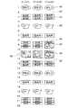 図4に、各リール3L,3C,3Rに表された複数種類の図柄が配列された図柄列を示す。図柄列は、奇数の位置に配置される複数種類の図柄と偶数の位置に配置されている複数のブランク(空白)すなわちブランク図柄92から構成されている。各図柄には、‘01’〜‘22’のコードナンバーが付され、このコードナンバーはデータテーブルとして後で説明するROM122(図9参照)に記憶されている。各リール3L,3C,3R上には、‘WILD’が記された「WILD」図柄91、‘BAR’が1つ記された「1BAR」図柄92、‘BAR’が2つ記された「2BAR」図柄93、‘BAR’が3つ記された「3BAR」図柄94、および赤い数字‘7’が記された「赤7」図柄95の図柄が描かれている。また、リール3L上には地図の一部を表す「地図1」図柄96、リール3C上には地図の別の一部を表す「地図2」図柄97、そして、リール3R上には地図の一部にコンドルの絵を含み、「地図1」図柄96および「地図2」図柄97とともに一枚の地図の絵を完成する「地図3」図柄98の図柄が表示されている。また、リール3R上には地図の一部に門の絵を含み、「地図1」図柄96および「地図2」図柄97とともに一枚の地図の絵を完成する「地図4」図柄99が表示されている。ここで地図の絵は宝の地図を表現しており、スロットマシン1のテーマとなっている宝探しに登場する小道具を表現している。このようにテーマに関連するものをリールの図柄として表すことにより、テーマのイメージをより強く演出して遊技者の興味を高める。[Symbols]