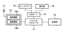 前記携帯電話機1は、図2に示すように、制御部本体であるマイクロプロセッサ11を設け、このマイクロプロセッサ11に不揮発性メモリや揮発性メモリからなる記憶部12及び無線通信を行う無線通信部13を接続すると共にI/Oポート14を介して液晶ディスプレイ15及び各種キーを配置した操作部16を接続している。前記無線通信部13にはアンテナ17が接続されている。 As shown in FIG. 2, the