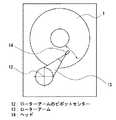 図21は完成したハードディスクドライブのカバーを開けた状態を示す概略図であり、記録用ディスク(メディア)1に対しデータの読み書きを行う互いに近接して設けられたリード用およびライト用のヘッドからなるヘッド14が、ローターアーム13によりメディア1の内周と外周の範囲内でピボットセンター12に対し回動自在に設置されている。 FIG. 21 is a schematic view showing a state in which the cover of the completed hard disk drive is opened, and is composed of read and write heads provided in close proximity to each other for reading / writing data from / to a recording disk (medium) 1. The