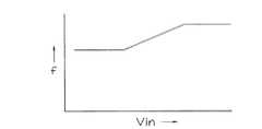 図7に示す実施の形態では、オペアンプ(53)の出力電圧が入力側基準電圧Vref1より高いとき、周波数変更回路(8)の合成抵抗は、第2及び第3の周波数変更抵抗(33,34)の合成抵抗値に近づく値に変動する。逆に、オペアンプ(53)の出力が入力側基準電圧Vref1より低いとき、周波数変更回路(8)の合成抵抗は、第1、第2及び第3の周波数変更抵抗(32,33,34)の合成抵抗値に近づく値に変動する。即ち、図2の実施の形態と同様に、入力電圧検出回路(7)が検出する入力電圧Vinが高いとき、周波数変更回路(8)の合成抵抗値が低くなって、発振回路(35)から発生する三角波は、図6に示すように、傾斜角度の高い三角波(51)となり、PWM回路(9)の発振周波数を高くできる。また、図7に示す回路又はその他の回路では、オペアンプ(53)の入力電圧Vinの変化に対し、発振回路(35)の発振周波数fが不連続的一次関数として変化する図8の関係、即ち、入力電圧検出回路(7)及び周波数変更回路(8)は、上限値と下限値との間で変化する発振周波数を変化させることができる。別法として、連続的に発振周波数が変化する単に連続的一次関数として入力電圧に比例して変化する図9の関係として、周波数変更回路(8)を構成することができる。また更に、入力電圧によって任意の関数として変化する周波数変更回路としてもよい。In the embodiment shown in FIG. 7, when the output voltage of the operational amplifier (53) is higher than the input-side reference voltageVref1 , the combined resistance of the frequency change circuit (8) is the second and third frequency change resistors (33, Fluctuates to a value approaching the combined resistance value of 34). On the contrary, when the output of the operational amplifier (53) is lower than the input side reference voltageVref1 , the combined resistance of the frequency changing circuit (8) is the first, second and third frequency changing resistors (32, 33, 34). It fluctuates to a value approaching the combined resistance value. That is, as in the embodiment of FIG. 2, when the high input voltage Vin the input voltage detecting circuit (7) detects, combined resistance value of the frequency changing circuit (8) is lowered, the oscillation circuit (35) As shown in FIG. 6, the triangular wave generated from the waveform becomes a triangular wave (51) having a high inclination angle, and the oscillation frequency of the PWM circuit (9) can be increased. Further, in the circuit or other circuits shown in FIG. 7, with respect to changes in the input voltage Vin of the operational amplifier (53), the relationship of FIG. 8 the oscillation frequency f of the oscillator circuit (35) varies as a discontinuous linear function, That is, the input voltage detection circuit (7) and the frequency change circuit (8) can change the oscillation frequency changing between the upper limit value and the lower limit value. Alternatively, the frequency change circuit (8) can be configured as the relationship of FIG. 9 where the oscillation frequency changes in proportion to the input voltage as a continuous linear function that continuously changes. Furthermore, a frequency changing circuit that changes as an arbitrary function depending on the input voltage may be used.
