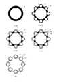図7(A)において、イニシエータI0として外半径=1、内半径=0.75の円環S1を用いた。そして、r=1、n=8、a=0.25の場合について、円環S1に対して変換Tを施すことにより、図7(A)の円環S1上に円環S2が上書きされた図7(B)の変換図形I1を得た。