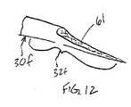 図12では、遠位端32fが圧縮された部分61になっていて、これが針状部を形成している。圧縮された部分61は、部分61の可撓性を高めるために、複数のスリットを十字パターン状に含んでいる。同様に、図13を参照すると、ハイポチューブ30gの遠位端部分32gは、圧縮された部分62になっていて、かかる部分62は水平な切れ目を備えている。The