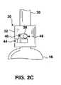 図2Cは回転係止形態にある連結機構30を示す。外科医はカップ形部材16を真空管20へ向けて押し、ガスケット材42を圧搾し、かつピン38を係止スロット46へ侵入させる。連結リング32を捩じることにより、外科医は、ピン38を係止スロット46内で実質的水平方向へ摺動させ、かつ凹所48にピン38を着座させる。凹所48に付いたピン38はガスケット材42により凹所48内に保持され、かつ真空管20の軸に対する回転を阻止される。従って、カップ形部材16およびシャフト部材40は真空管20の軸に対する回転を阻止される。  FIG. 2C shows the