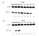 を含む群より選択されるDNAによってコードされる。なお他の好ましい態様において、本発明のキットは、核酸切断産物を検出するための試薬をさらに含む。さらなる好ましい態様において、切断産物を検出するための試薬は、引き続く侵襲性切断反応における使用のためのオリゴヌクレオチドを含む(例えば、米国特許第5,994,069号を参照されたい)。特に好ましい態様において、引き続く侵襲性切断反応のための試薬は、蛍光共鳴エネルギー移動(FRET)効果を産生する部分で標識されたプローブを含む。The present invention also provides a nucleic acid processing kit. One preferred embodiment is a kit comprising a composition comprising at least one improved 5 'nuclease. Another preferred embodiment provides a kit comprising: a) a composition comprising at least one improved 5 'nuclease; and b) an INVADER oligonucleotide and a signal probe oligonucleotide. In some embodiments of the kit of the invention, the improved 5 'nuclease is from a DNA polymerase from eubacterial species. In a further embodiment, the eubacterial species is thermostable. In still further embodiments, the thermostable bacterium is a bacterium of the genus Thermus. In still further embodiments, the thermostable bacterium is selected from the group consisting of Thermus aquaticus, Thermus flavus, Thermus thermophilus, Thermus philiforms, and Thermus scotodoctus. In a preferred embodiment, the improved 5 'nuclease comprises SEQ ID NO: