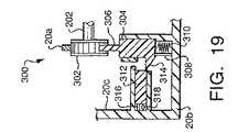図16〜19のディスペンサー300はまた、細長い形状記憶素子308を含み、形状記憶素子308は、帯電していない長さから帯電した長さへと縮小する可変長の形状記憶素子308が、スライド304の第2固定部材20bへ向かう直線運動を引き起こすように、スライド304と第2固定部材20bとの間に連結される。作動構成要素310は、形状記憶素子308が帯電していない場合に、スライド304を歯車302に向かって直線運動させるために、スライド304と第2固定部材20bとの間に連結される。図示されるように、作動構成要素は、螺旋状圧縮ばね310からなり、該ばね310は、形状記憶素子308が帯電していない長さから帯電した長さへと縮小すると収縮し、また、拡張して、形状記憶素子308を帯電した長さから帯電していない長さへと増長する。  The